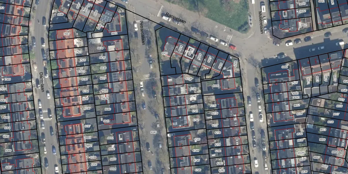Gebruik de zoekbalk of klik op een perceel voor informatie over de adressen binnen dit perceel.