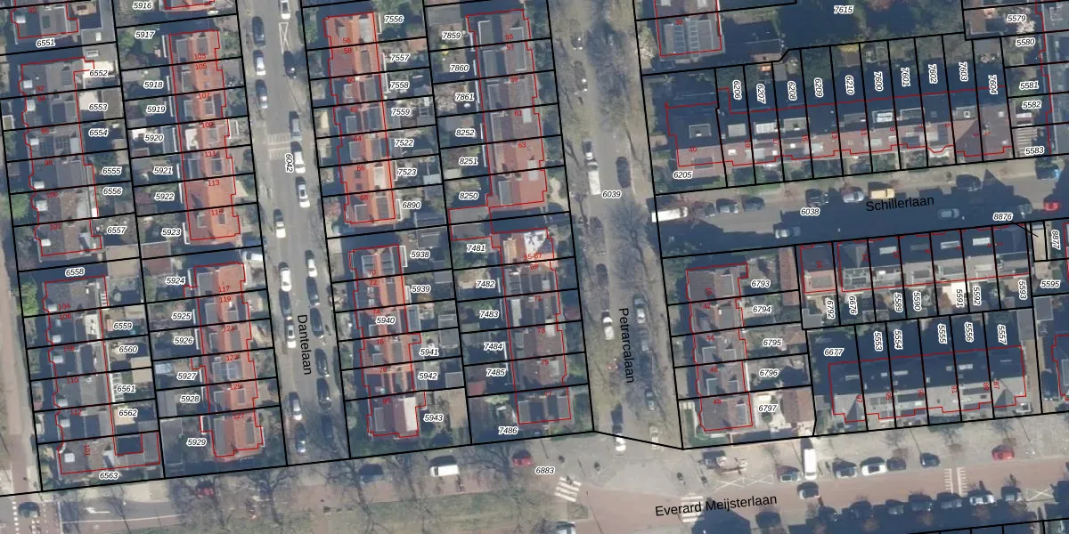Gebruik de zoekbalk of klik op een perceel voor informatie over de adressen binnen dit perceel.