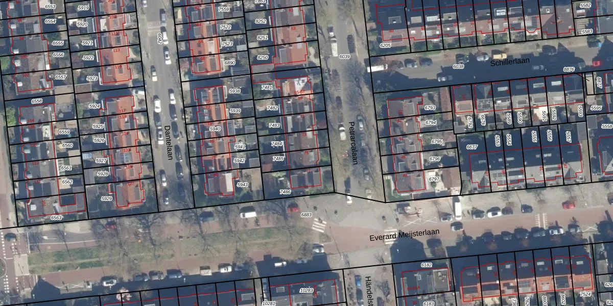Gebruik de zoekbalk of klik op een perceel voor informatie over de adressen binnen dit perceel.