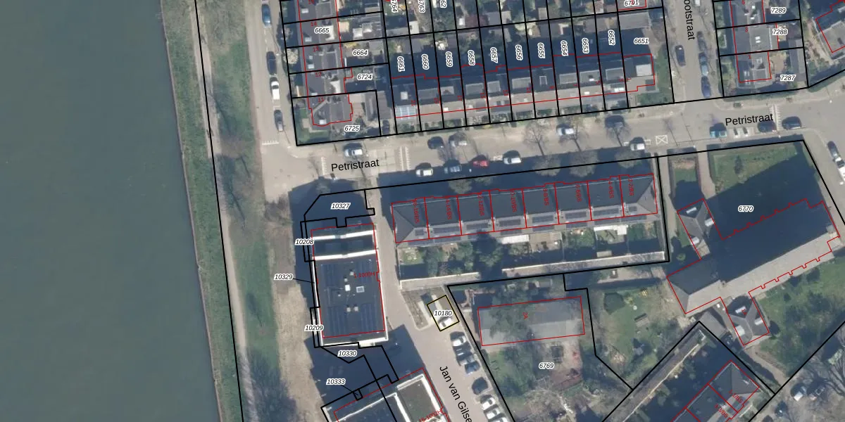 Het perceel waarop Petristraat 16 staat heeft een oppervlakte van 5578 m². Dit is een zeer groot perceel. De perceeloppervlakte wordt geregistreerd door het Kadaster. Gedetailleerde informatie over de maten van dit perceel kunt u vinden in het rapport Kadastrale kaart met maatvoering van Petristraat 16.