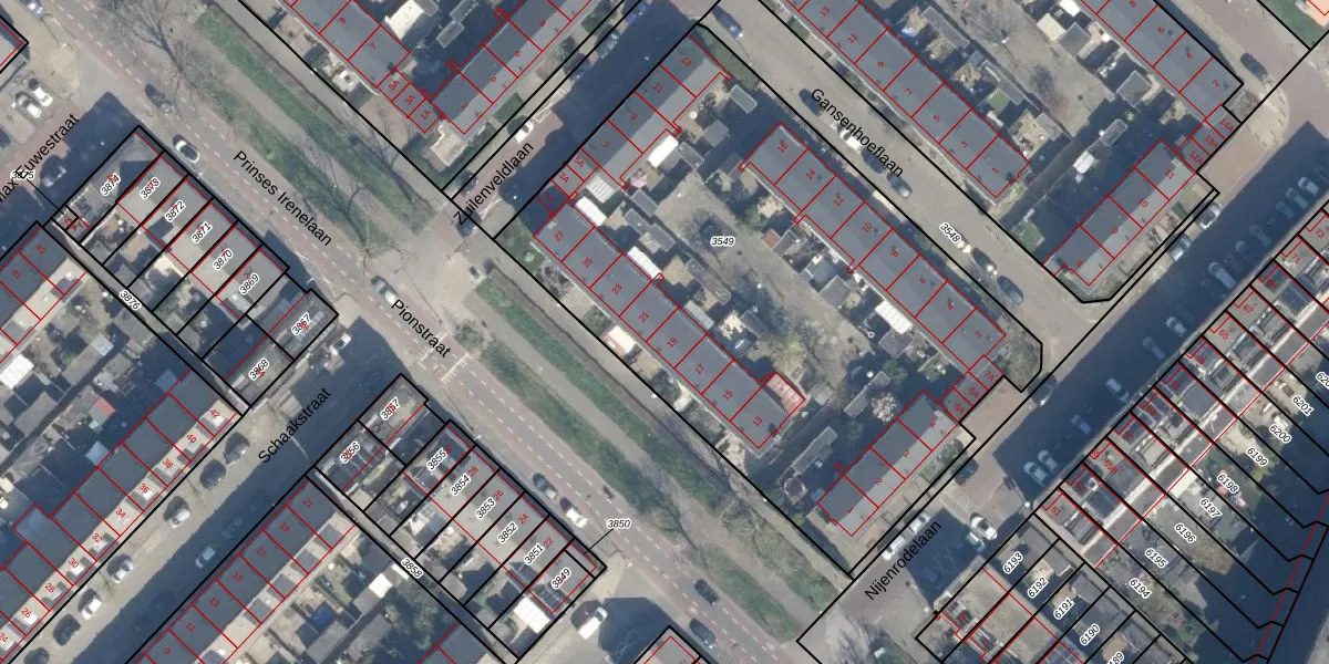 Pionstraat 19 is gelegen op kadastraal perceel ZLN02B3549. Deze kadastrale aanduiding is uniek en wordt gebruikt door het Kadaster om eigendomsrechten en andere zakelijke rechten vast te leggen. Het perceel maakt onderdeel uit van de kadastrale gemeente Zuilen.