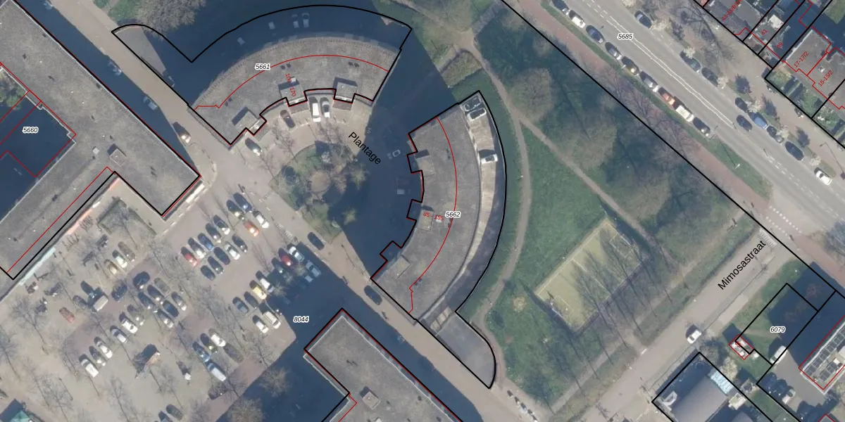 Het perceel waarop Plantage 123 staat heeft een oppervlakte van 1185 m². Dit is een zeer groot perceel. De perceeloppervlakte wordt geregistreerd door het Kadaster. Gedetailleerde informatie over de maten van dit perceel kunt u vinden in het rapport Kadastrale kaart met maatvoering van Plantage 123.