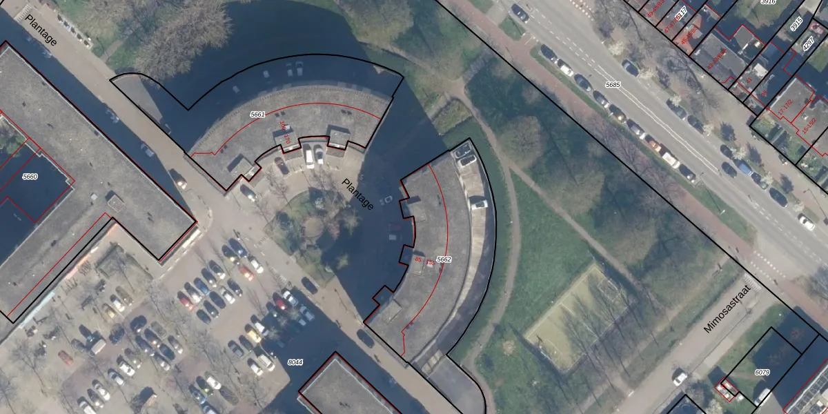 Het perceel waarop Plantage 151 staat heeft een oppervlakte van 1185 m². Dit is een zeer groot perceel. De perceeloppervlakte wordt geregistreerd door het Kadaster. Gedetailleerde informatie over de maten van dit perceel kunt u vinden in het rapport Kadastrale kaart met maatvoering van Plantage 151.