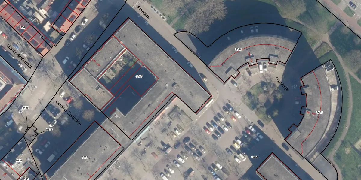 Het perceel waarop Plantage 74 staat heeft een oppervlakte van 2530 m². Dit is een zeer groot perceel. De perceeloppervlakte wordt geregistreerd door het Kadaster. Gedetailleerde informatie over de maten van dit perceel kunt u vinden in het rapport Kadastrale kaart met maatvoering van Plantage 74.