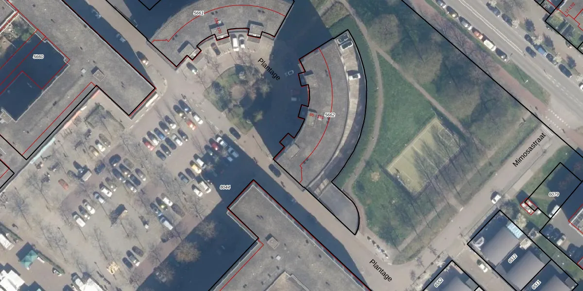 Het perceel waarop Plantage 99 staat heeft een oppervlakte van 1185 m². Dit is een zeer groot perceel. De perceeloppervlakte wordt geregistreerd door het Kadaster. Gedetailleerde informatie over de maten van dit perceel kunt u vinden in het rapport Kadastrale kaart met maatvoering van Plantage 99.
