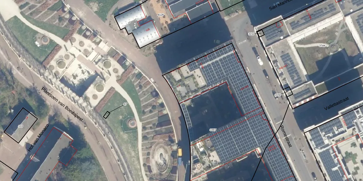 Het perceel waarop Plantsoen van Boedapest 3 staat heeft een oppervlakte van 4135 m². Dit is een zeer groot perceel. De perceeloppervlakte wordt geregistreerd door het Kadaster. Gedetailleerde informatie over de maten van dit perceel kunt u vinden in het rapport Kadastrale kaart met maatvoering van Plantsoen van Boedapest 3.