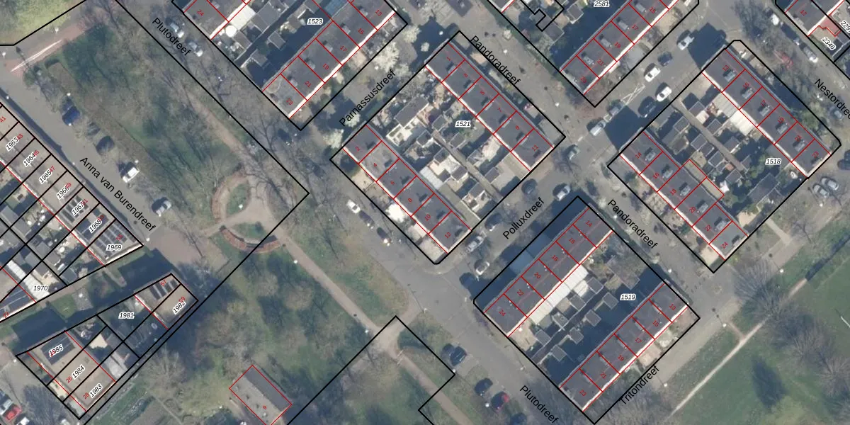 Het perceel waarop Plutodreef 10 staat heeft een oppervlakte van 1529 m². Dit is een zeer groot perceel. De perceeloppervlakte wordt geregistreerd door het Kadaster. Gedetailleerde informatie over de maten van dit perceel kunt u vinden in het rapport Kadastrale kaart met maatvoering van Plutodreef 10.