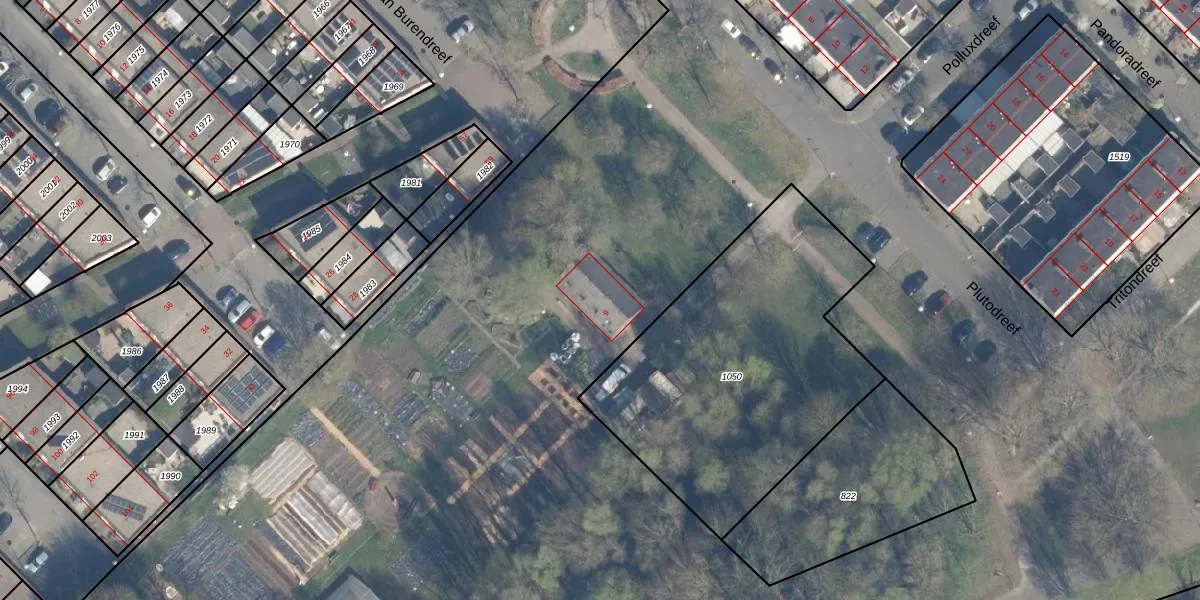 Het perceel waarop Plutodreef 9 staat heeft een oppervlakte van 16,9 ha. Dit is een zeer groot perceel. De perceeloppervlakte wordt geregistreerd door het Kadaster. Gedetailleerde informatie over de maten van dit perceel kunt u vinden in het rapport Kadastrale kaart met maatvoering van Plutodreef 9.