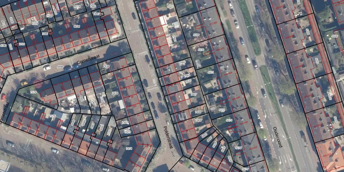 Gebruik de zoekbalk of klik op een perceel voor informatie over de adressen binnen dit perceel.