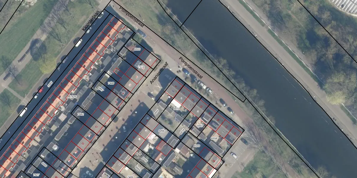 Gebruik de zoekbalk of klik op een perceel voor informatie over de adressen binnen dit perceel.