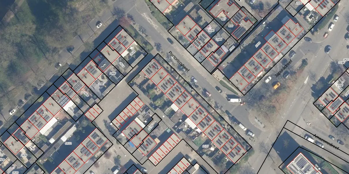 Het perceel waarop Portoricodreef 29 staat heeft een oppervlakte van 2640 m². Dit is een zeer groot perceel. De perceeloppervlakte wordt geregistreerd door het Kadaster. Gedetailleerde informatie over de maten van dit perceel kunt u vinden in het rapport Kadastrale kaart met maatvoering van Portoricodreef 29.