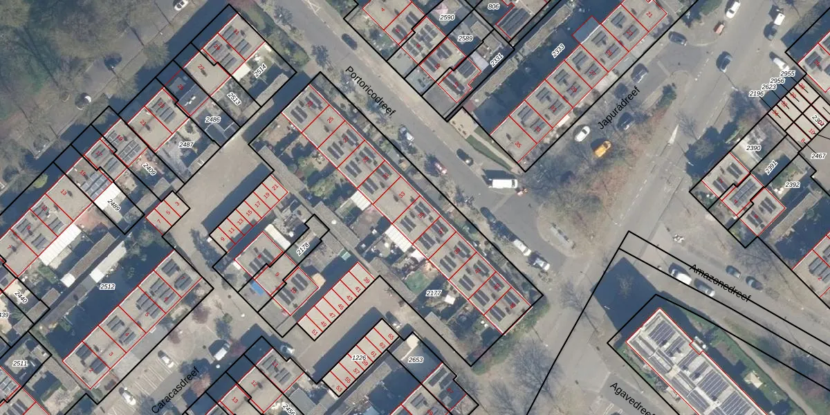 Het perceel waarop Portoricodreef 35 staat heeft een oppervlakte van 2640 m². Dit is een zeer groot perceel. De perceeloppervlakte wordt geregistreerd door het Kadaster. Gedetailleerde informatie over de maten van dit perceel kunt u vinden in het rapport Kadastrale kaart met maatvoering van Portoricodreef 35.