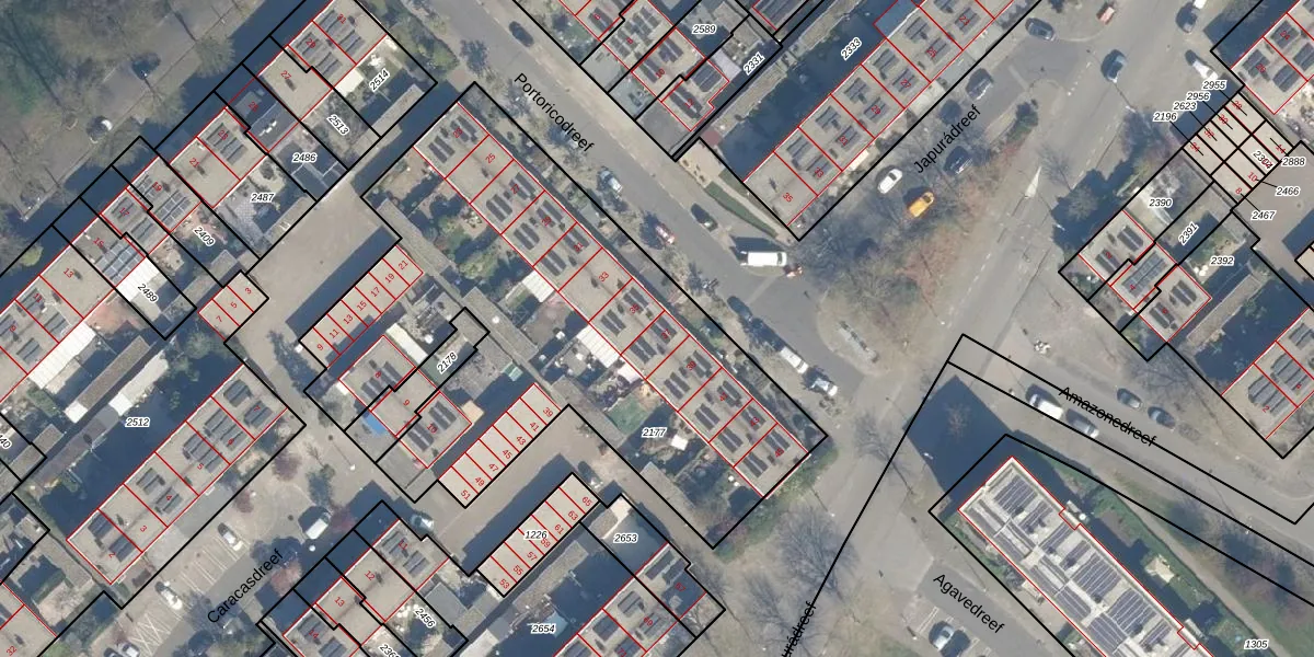 Het perceel waarop Portoricodreef 37 staat heeft een oppervlakte van 2640 m². Dit is een zeer groot perceel. De perceeloppervlakte wordt geregistreerd door het Kadaster. Gedetailleerde informatie over de maten van dit perceel kunt u vinden in het rapport Kadastrale kaart met maatvoering van Portoricodreef 37.