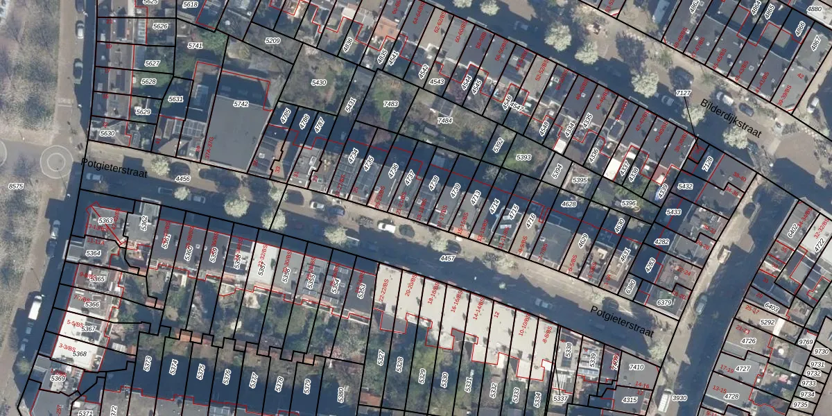 Het perceel waarop Potgieterstraat 19 staat heeft een oppervlakte van 98 m². Dit is een klein perceel. De perceeloppervlakte wordt geregistreerd door het Kadaster. Gedetailleerde informatie over de maten van dit perceel kunt u vinden in het rapport Kadastrale kaart met maatvoering van Potgieterstraat 19.