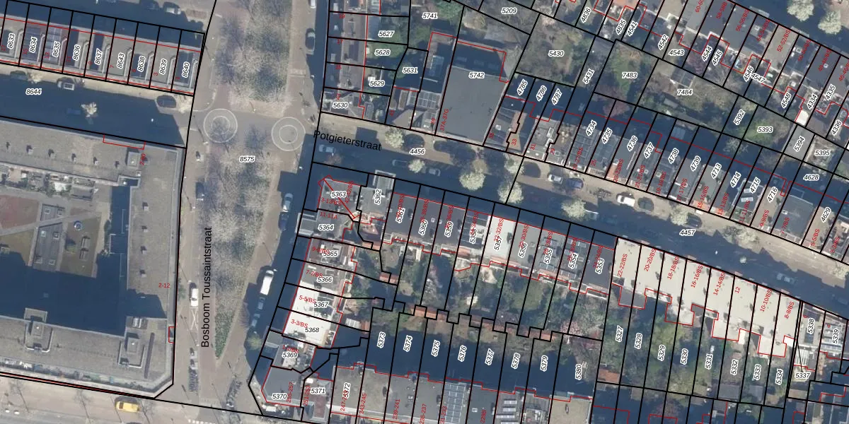 Het perceel waarop Potgieterstraat 38-BS staat heeft een oppervlakte van 175 m². Dit is een middelgroot perceel. De perceeloppervlakte wordt geregistreerd door het Kadaster. Gedetailleerde informatie over de maten van dit perceel kunt u vinden in het rapport Kadastrale kaart met maatvoering van Potgieterstraat 38-BS.