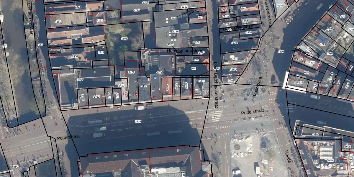 Het perceel waarop Potterstraat 22-F staat heeft een oppervlakte van 50 m². Dit is een klein perceel. De perceeloppervlakte wordt geregistreerd door het Kadaster. Gedetailleerde informatie over de maten van dit perceel kunt u vinden in het rapport Kadastrale kaart met maatvoering van Potterstraat 22-F.
