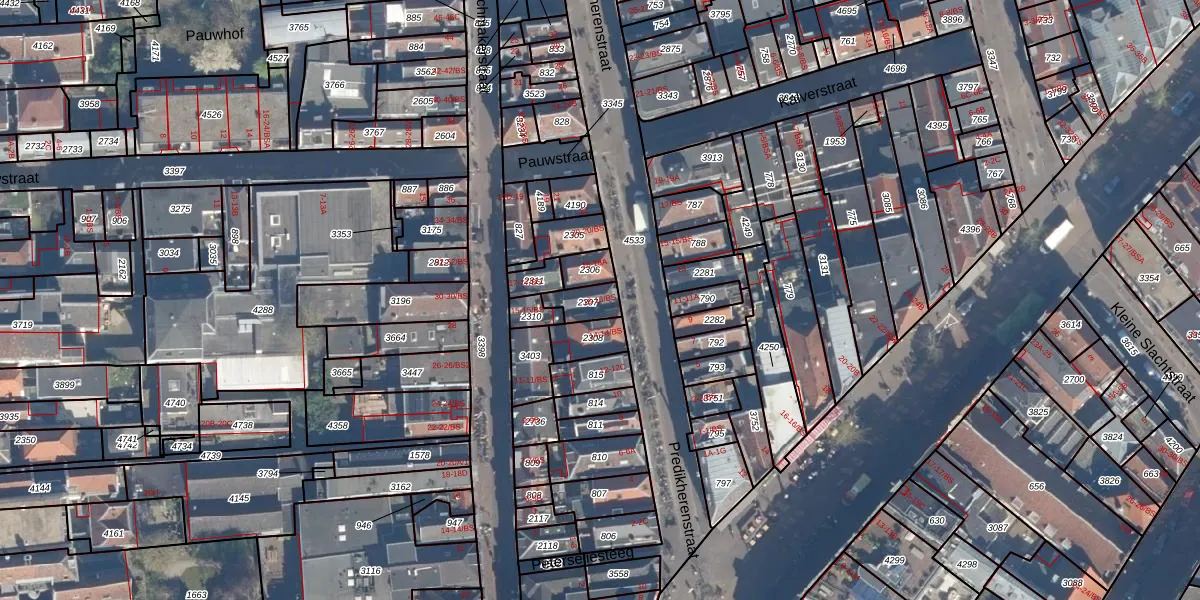 Het perceel waarop Predikherenstraat 16-BS staat heeft een oppervlakte van 54 m². Dit is een klein perceel. De perceeloppervlakte wordt geregistreerd door het Kadaster. Gedetailleerde informatie over de maten van dit perceel kunt u vinden in het rapport Kadastrale kaart met maatvoering van Predikherenstraat 16-BS.