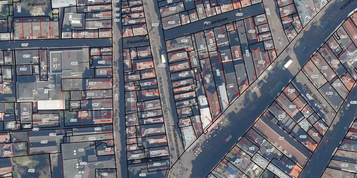 Het perceel waarop Predikherenstraat 9 staat heeft een oppervlakte van 49 m². Dit is een klein perceel. De perceeloppervlakte wordt geregistreerd door het Kadaster. Gedetailleerde informatie over de maten van dit perceel kunt u vinden in het rapport Kadastrale kaart met maatvoering van Predikherenstraat 9.
