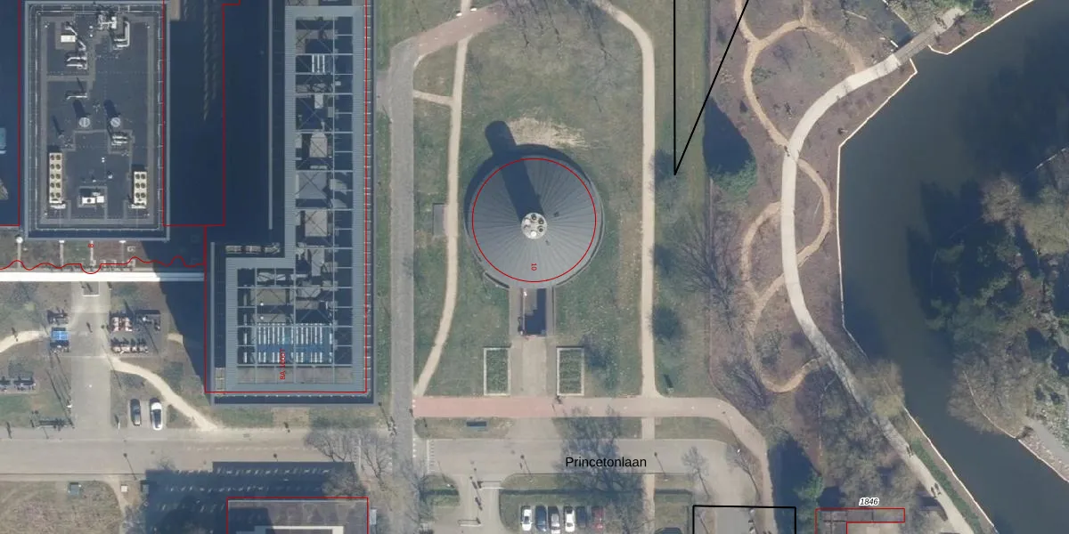 Het perceel waarop Princetonlaan 10 staat heeft een oppervlakte van 15,5 ha. Dit is een zeer groot perceel. De perceeloppervlakte wordt geregistreerd door het Kadaster. Gedetailleerde informatie over de maten van dit perceel kunt u vinden in het rapport Kadastrale kaart met maatvoering van Princetonlaan 10.