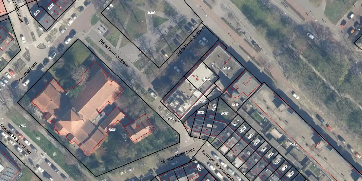 Het perceel waarop Prins Bernhardplein 48 staat heeft een oppervlakte van 343 m². Dit is een groot perceel. De perceeloppervlakte wordt geregistreerd door het Kadaster. Gedetailleerde informatie over de maten van dit perceel kunt u vinden in het rapport Kadastrale kaart met maatvoering van Prins Bernhardplein 48.