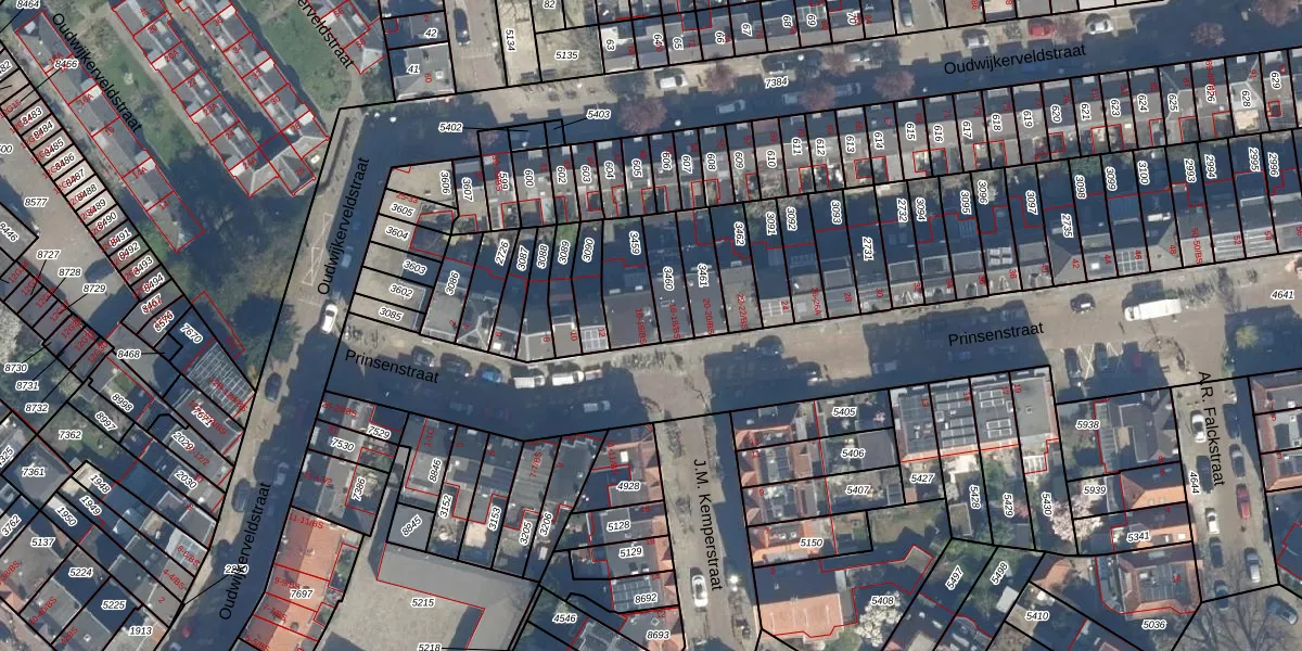 Het perceel waarop Prinsenstraat 16 staat heeft een oppervlakte van 145 m². Dit is een middelgroot perceel. De perceeloppervlakte wordt geregistreerd door het Kadaster. Gedetailleerde informatie over de maten van dit perceel kunt u vinden in het rapport Kadastrale kaart met maatvoering van Prinsenstraat 16.