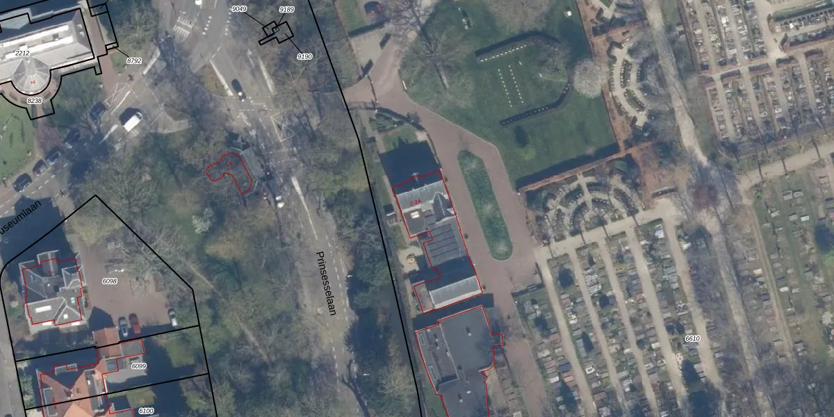 Het perceel waarop Prinsesselaan 2 staat heeft een oppervlakte van 4,0 ha. Dit is een zeer groot perceel. De perceeloppervlakte wordt geregistreerd door het Kadaster. Gedetailleerde informatie over de maten van dit perceel kunt u vinden in het rapport Kadastrale kaart met maatvoering van Prinsesselaan 2.