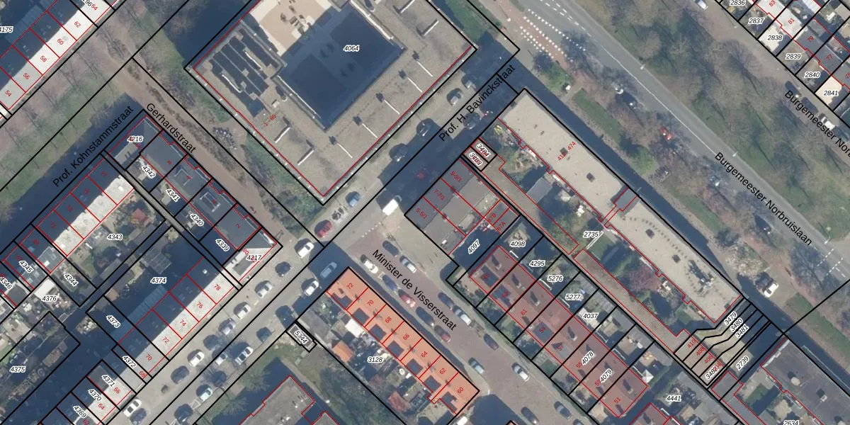 Prof. H. Bavinckstraat 5-1 is gelegen op kadastraal perceel ZLN02B4097. Deze kadastrale aanduiding is uniek en wordt gebruikt door het Kadaster om eigendomsrechten en andere zakelijke rechten vast te leggen. Het perceel maakt onderdeel uit van de kadastrale gemeente Zuilen.