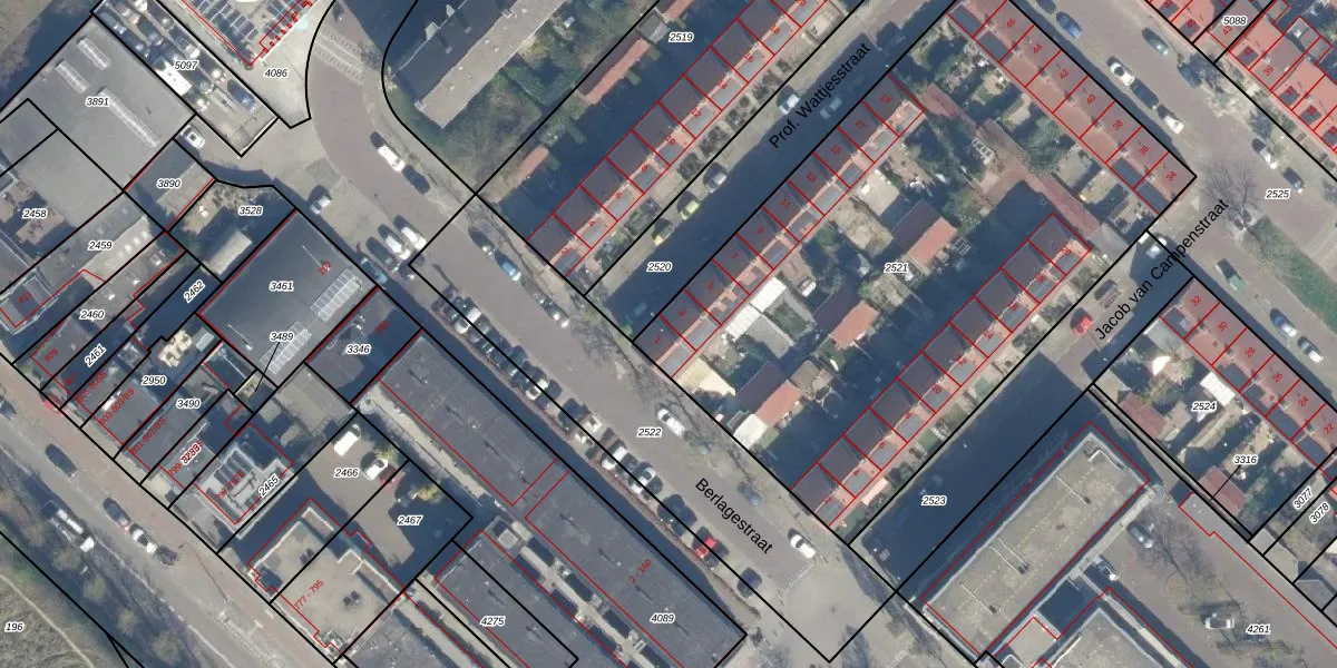 Prof. Wattjesstraat 1 is gelegen op kadastraal perceel ZLN02B2521. Deze kadastrale aanduiding is uniek en wordt gebruikt door het Kadaster om eigendomsrechten en andere zakelijke rechten vast te leggen. Het perceel maakt onderdeel uit van de kadastrale gemeente Zuilen.