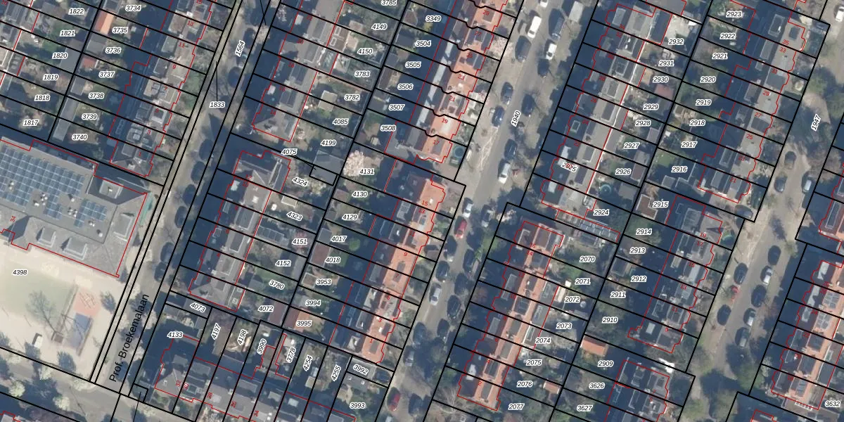 Gebruik de zoekbalk of klik op een perceel voor informatie over de adressen binnen dit perceel.