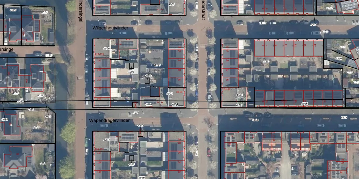 Het adres is gelegen op perceel 4893 in de sectie V en de kadastrale gemeente Utrecht. De kadastrale aanduiding is aldus UTT00-V-4893. Het perceel is kleiner dan gemiddeld in Utrecht. Het perceel is 140 m² groot, terwijl het gemiddelde ligt op 1438,48 m². Het grootste perceel in de kadastrale gemeente is 90,1 ha. Het kleinste perceel heeft een oppervlakte van 0 m². Er zijn 2 adressen aanwezig op het perceel. In de Basisregistratie Kadaster (BRK) werden de grenzen van het perceel geregistreerd op 22-02-2012.