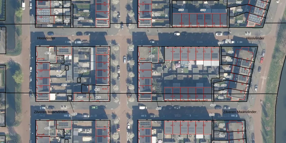 Het perceel waarop Purpervlinderstraat 65 staat heeft een oppervlakte van 1623 m². Dit is een zeer groot perceel. De perceeloppervlakte wordt geregistreerd door het Kadaster. Gedetailleerde informatie over de maten van dit perceel kunt u vinden in het rapport Kadastrale kaart met maatvoering van Purpervlinderstraat 65.