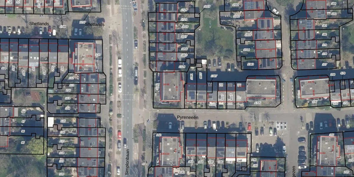 Het perceel waarop Pyreneeën 4 staat heeft een oppervlakte van 370 m². Dit is een groot perceel. De perceeloppervlakte wordt geregistreerd door het Kadaster. Gedetailleerde informatie over de maten van dit perceel kunt u vinden in het rapport Kadastrale kaart met maatvoering van Pyreneeën 4.