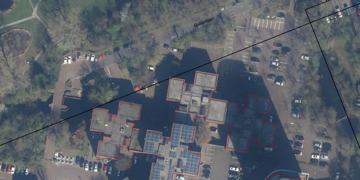 Het perceel waarop Pythagoraslaan 105-E staat heeft een oppervlakte van 4,0 ha. Dit is een zeer groot perceel. De perceeloppervlakte wordt geregistreerd door het Kadaster. Gedetailleerde informatie over de maten van dit perceel kunt u vinden in het rapport Kadastrale kaart met maatvoering van Pythagoraslaan 105-E.