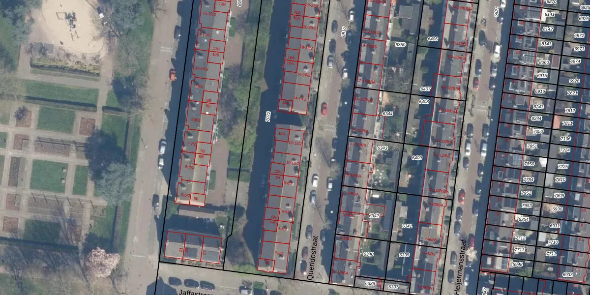 Het perceel waarop Queridostraat 12 staat heeft een oppervlakte van 2464 m². Dit is een zeer groot perceel. De perceeloppervlakte wordt geregistreerd door het Kadaster. Gedetailleerde informatie over de maten van dit perceel kunt u vinden in het rapport Kadastrale kaart met maatvoering van Queridostraat 12.