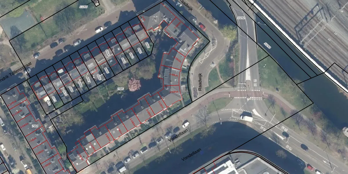 Raadwijk 5 is gelegen op kadastraal perceel CTR00D7985. Deze kadastrale aanduiding is uniek en wordt gebruikt door het Kadaster om eigendomsrechten en andere zakelijke rechten vast te leggen. Het perceel maakt onderdeel uit van de kadastrale gemeente Catharijne.