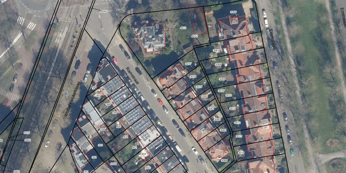Gebruik de zoekbalk of klik op een perceel voor informatie over de adressen binnen dit perceel.