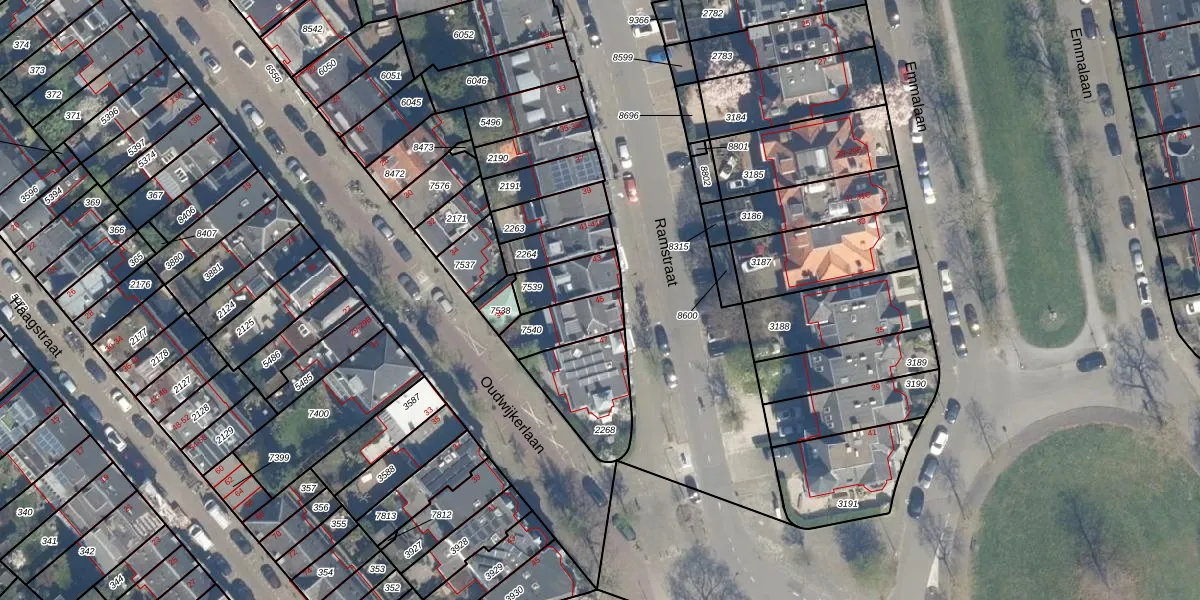 Het perceel waarop Ramstraat 45 staat heeft een oppervlakte van 133 m². Dit is een middelgroot perceel. De perceeloppervlakte wordt geregistreerd door het Kadaster. Gedetailleerde informatie over de maten van dit perceel kunt u vinden in het rapport Kadastrale kaart met maatvoering van Ramstraat 45.