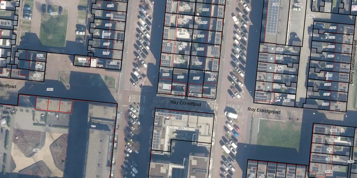 Ray Conniffpad 16 is gelegen op kadastraal perceel CTR00A2619. Deze kadastrale aanduiding is uniek en wordt gebruikt door het Kadaster om eigendomsrechten en andere zakelijke rechten vast te leggen. Het perceel maakt onderdeel uit van de kadastrale gemeente Catharijne.