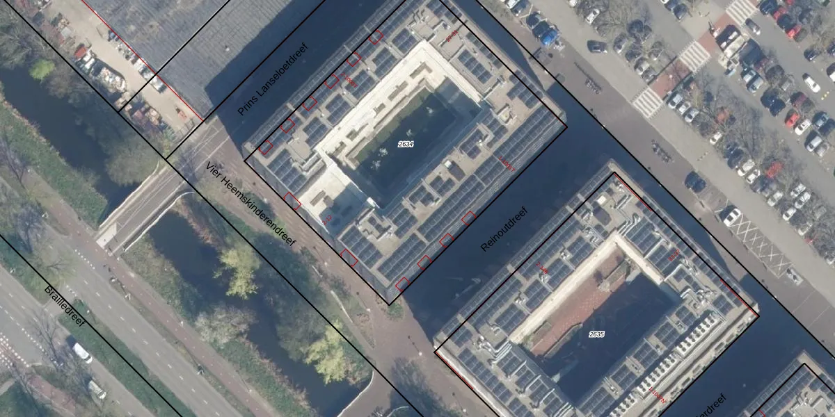 Het perceel waarop Reinoutdreef 69 staat heeft een oppervlakte van 2958 m². Dit is een zeer groot perceel. De perceeloppervlakte wordt geregistreerd door het Kadaster. Gedetailleerde informatie over de maten van dit perceel kunt u vinden in het rapport Kadastrale kaart met maatvoering van Reinoutdreef 69.