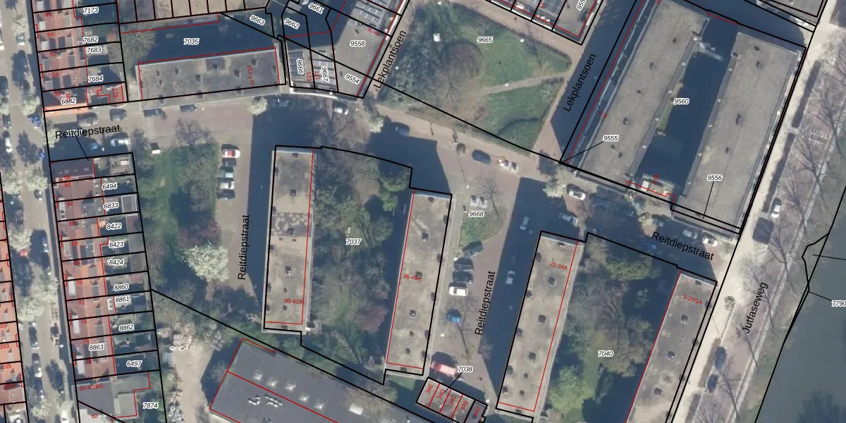 Reitdiepstraat 36-1A is gelegen op kadastraal perceel CTR00D7037. Deze kadastrale aanduiding is uniek en wordt gebruikt door het Kadaster om eigendomsrechten en andere zakelijke rechten vast te leggen. Het perceel maakt onderdeel uit van de kadastrale gemeente Catharijne.