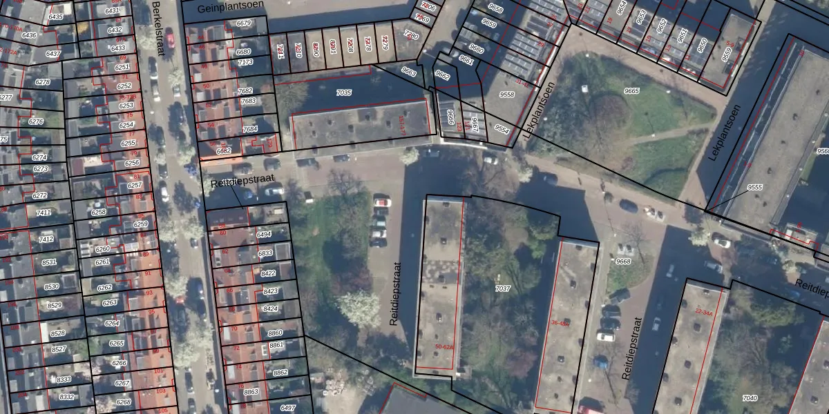 Het perceel waarop Reitdiepstraat 38 staat heeft een oppervlakte van 4945 m². Dit is een zeer groot perceel. De perceeloppervlakte wordt geregistreerd door het Kadaster. Gedetailleerde informatie over de maten van dit perceel kunt u vinden in het rapport Kadastrale kaart met maatvoering van Reitdiepstraat 38.