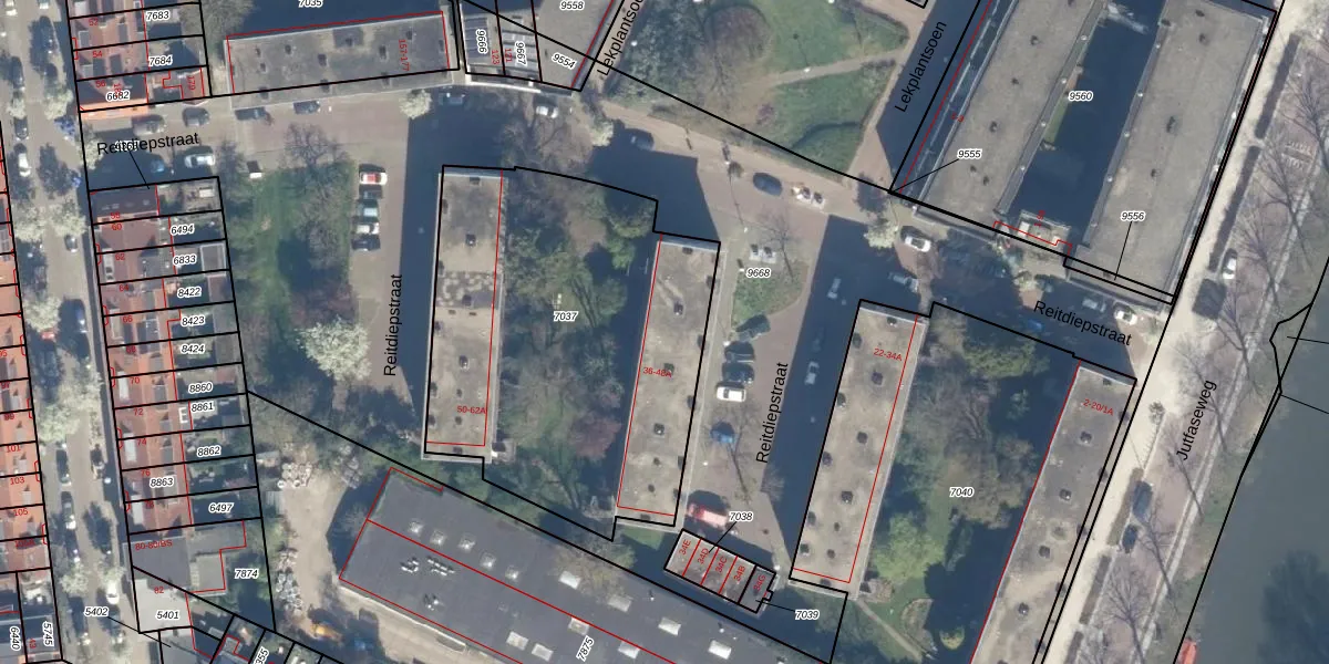 Reitdiepstraat 40 is gelegen op kadastraal perceel CTR00D7037. Deze kadastrale aanduiding is uniek en wordt gebruikt door het Kadaster om eigendomsrechten en andere zakelijke rechten vast te leggen. Het perceel maakt onderdeel uit van de kadastrale gemeente Catharijne.