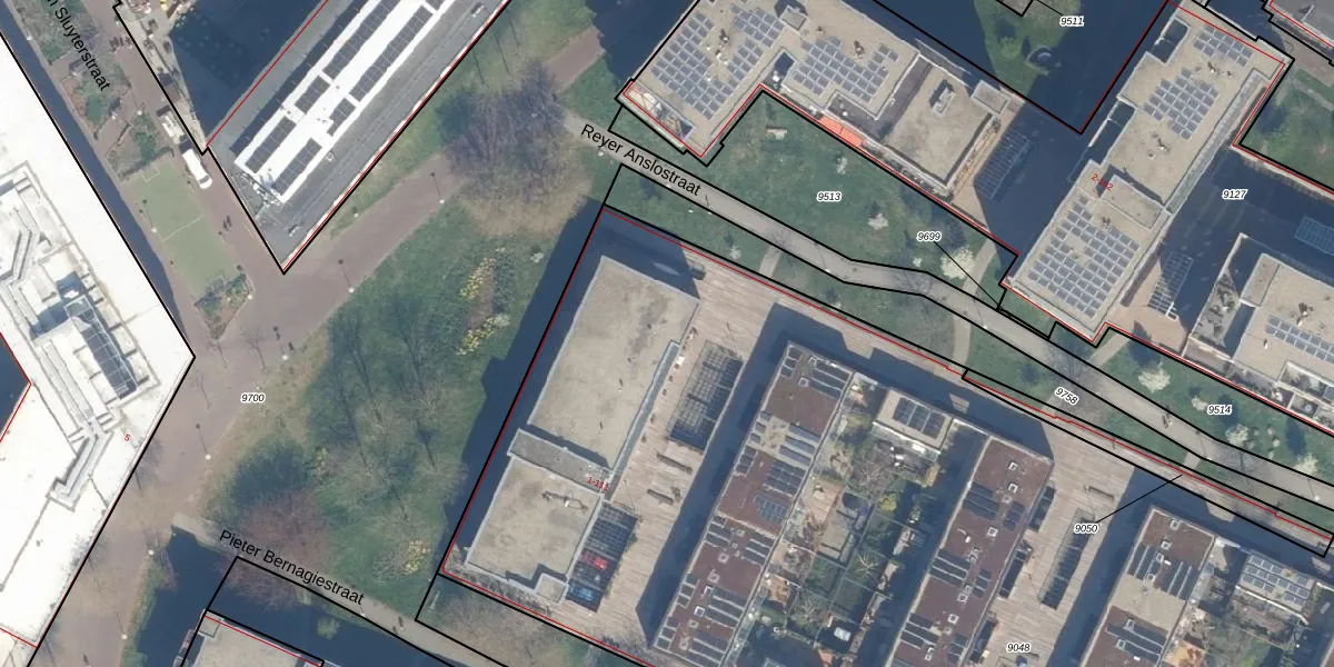 Het perceel waarop Reyer Anslostraat 1 staat heeft een oppervlakte van 8850 m². Dit is een zeer groot perceel. De perceeloppervlakte wordt geregistreerd door het Kadaster. Gedetailleerde informatie over de maten van dit perceel kunt u vinden in het rapport Kadastrale kaart met maatvoering van Reyer Anslostraat 1.