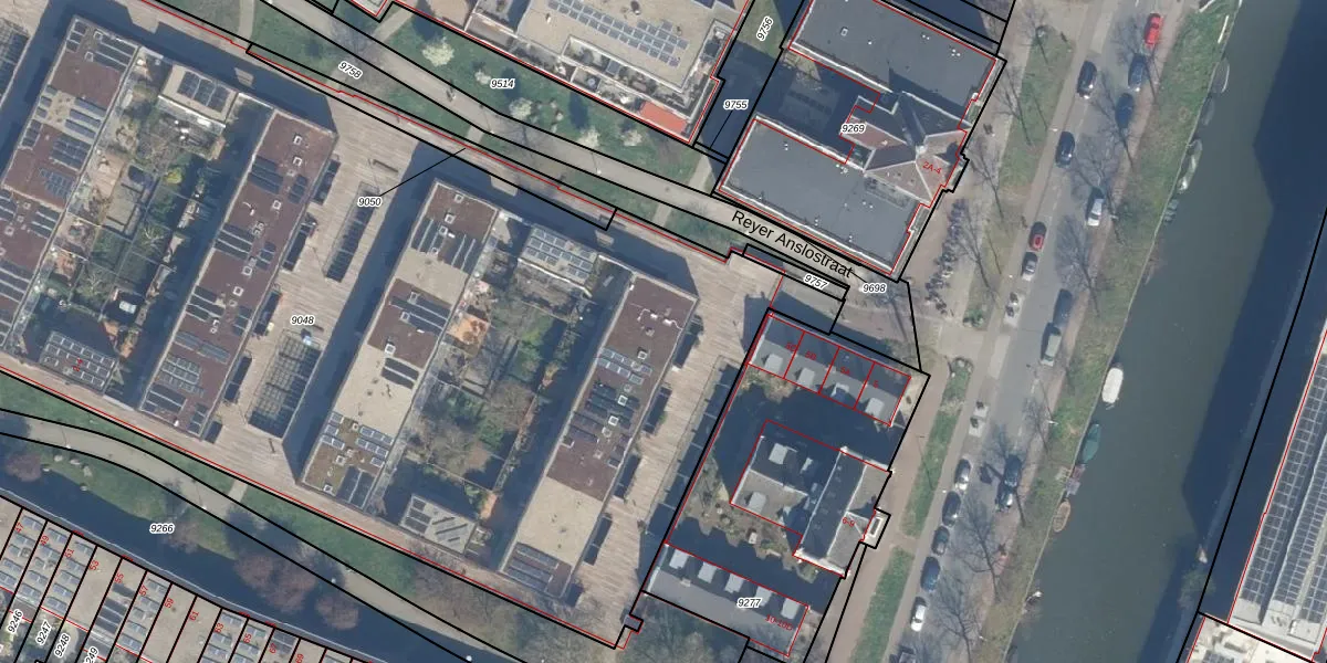 Reyer Anslostraat 97 is gelegen op kadastraal perceel CTR00D9048. Deze kadastrale aanduiding is uniek en wordt gebruikt door het Kadaster om eigendomsrechten en andere zakelijke rechten vast te leggen. Het perceel maakt onderdeel uit van de kadastrale gemeente Catharijne.
