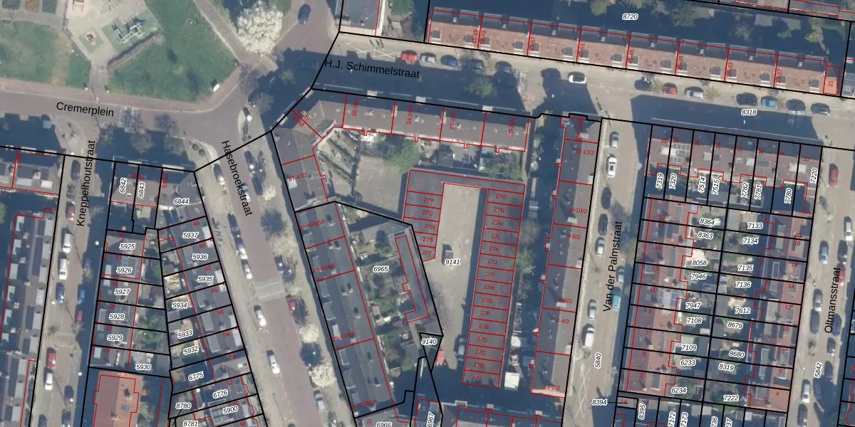Het perceel waarop Rhijnvis Feithstraat 27-Q staat heeft een oppervlakte van 3700 m². Dit is een zeer groot perceel. De perceeloppervlakte wordt geregistreerd door het Kadaster. Gedetailleerde informatie over de maten van dit perceel kunt u vinden in het rapport Kadastrale kaart met maatvoering van Rhijnvis Feithstraat 27-Q.