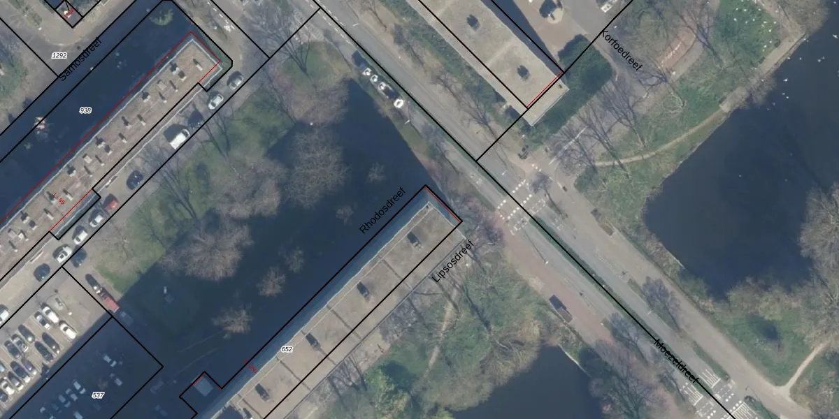 Het perceel waarop Rhodosdreef 2 staat heeft een oppervlakte van 1527 m². Dit is een zeer groot perceel. De perceeloppervlakte wordt geregistreerd door het Kadaster. Gedetailleerde informatie over de maten van dit perceel kunt u vinden in het rapport Kadastrale kaart met maatvoering van Rhodosdreef 2.
