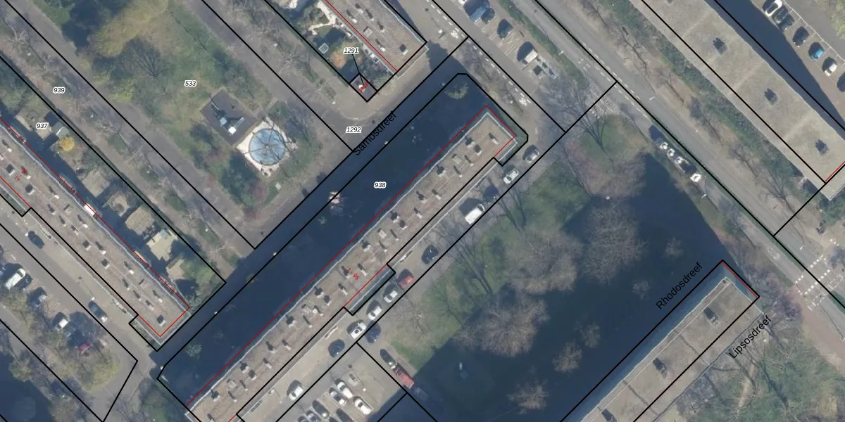 Het perceel waarop Rhodosdreef 27 staat heeft een oppervlakte van 2148 m². Dit is een zeer groot perceel. De perceeloppervlakte wordt geregistreerd door het Kadaster. Gedetailleerde informatie over de maten van dit perceel kunt u vinden in het rapport Kadastrale kaart met maatvoering van Rhodosdreef 27.