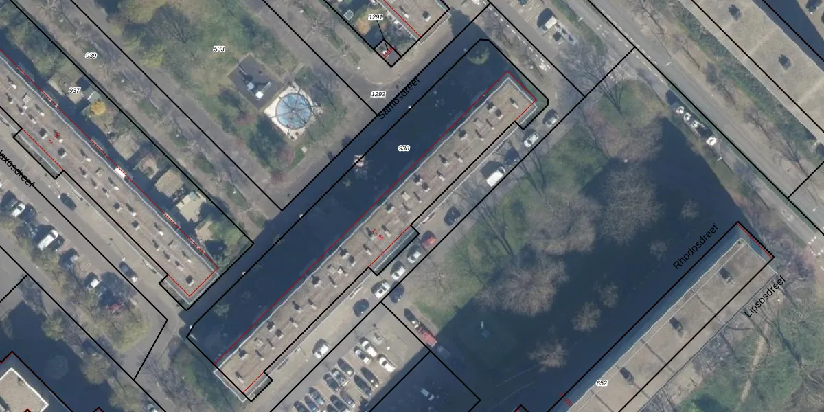 Het perceel waarop Rhodosdreef 35 staat heeft een oppervlakte van 2148 m². Dit is een zeer groot perceel. De perceeloppervlakte wordt geregistreerd door het Kadaster. Gedetailleerde informatie over de maten van dit perceel kunt u vinden in het rapport Kadastrale kaart met maatvoering van Rhodosdreef 35.