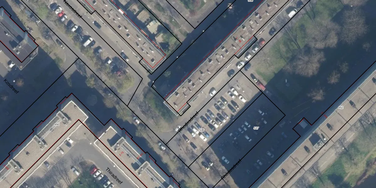 Rhodosdreef 77 is gelegen op kadastraal perceel UTT00H938. Deze kadastrale aanduiding is uniek en wordt gebruikt door het Kadaster om eigendomsrechten en andere zakelijke rechten vast te leggen. Het perceel maakt onderdeel uit van de kadastrale gemeente Utrecht.