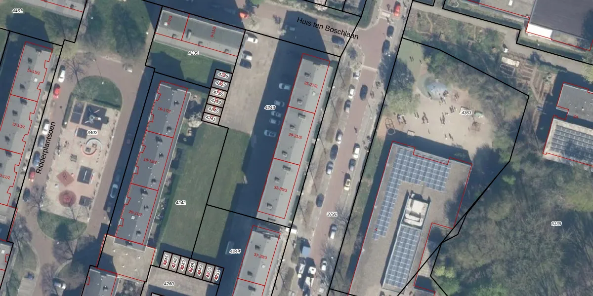 Ridderlaan 31-2 is gelegen op kadastraal perceel UTT00P4243. Deze kadastrale aanduiding is uniek en wordt gebruikt door het Kadaster om eigendomsrechten en andere zakelijke rechten vast te leggen. Het perceel maakt onderdeel uit van de kadastrale gemeente Utrecht.